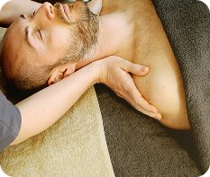 Masaż rozluźniający spięcia w obrębie karku, szyi i głowy, łagodzący bóle napięciowe.