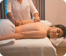 Intensywny masaż wspomagający redukcję cellulitu, modelujący sylwetkę i przyspieszający metabolizm.