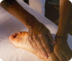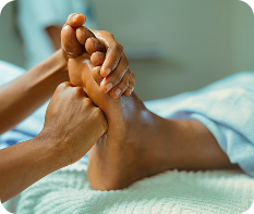 Masaż stóp i łydek połączony z refleksologią, wpływający korzystnie na całe ciało.
